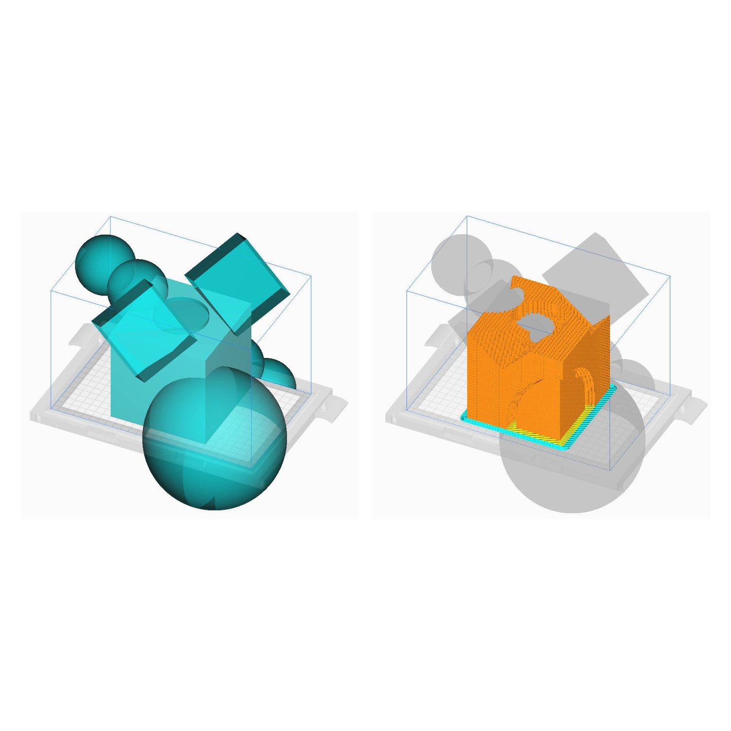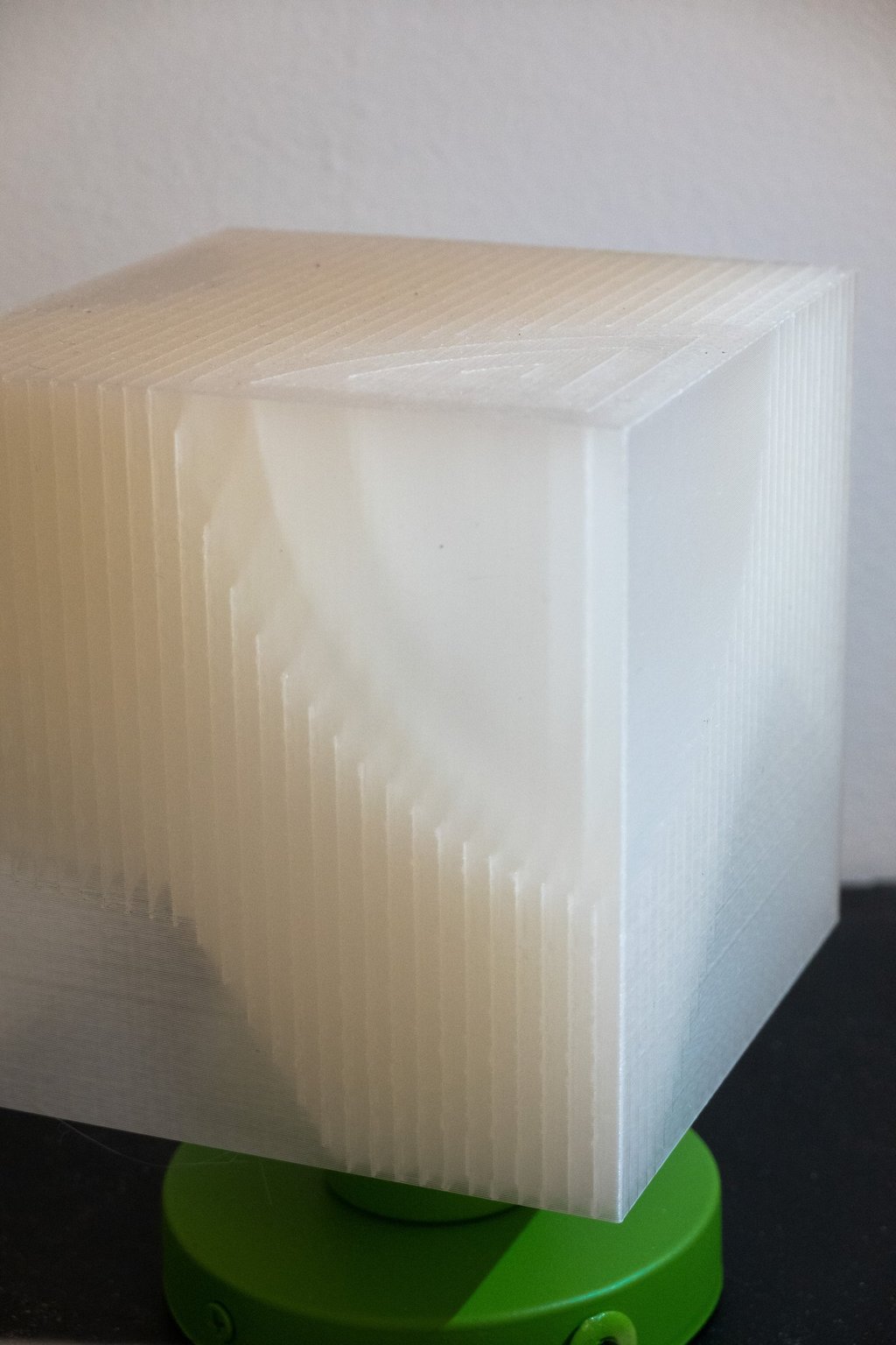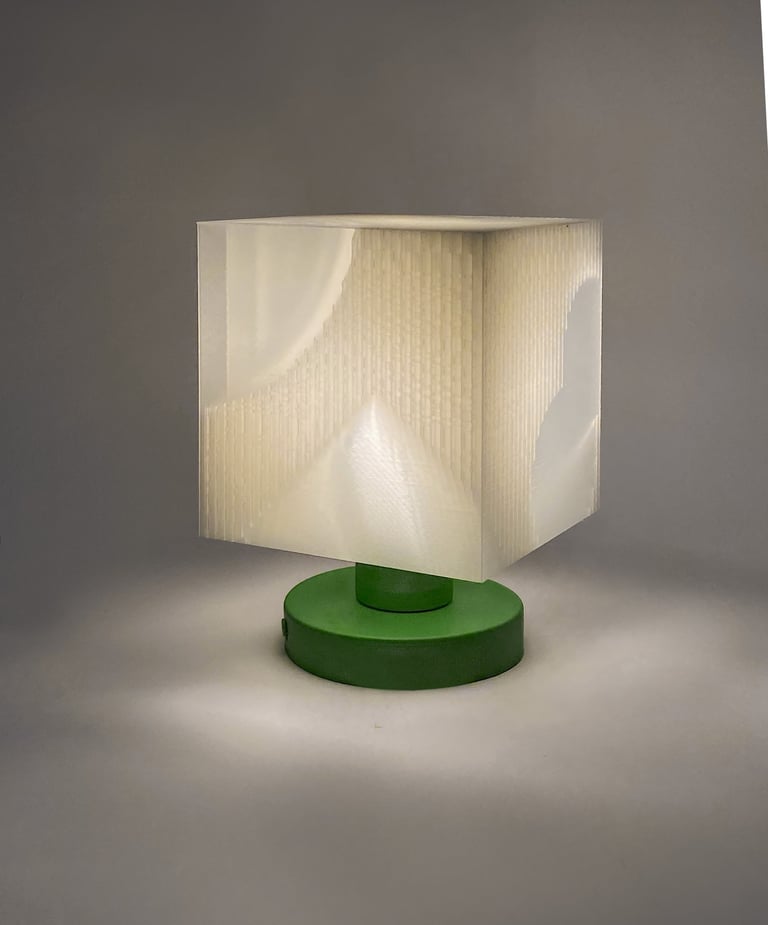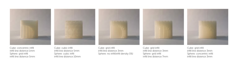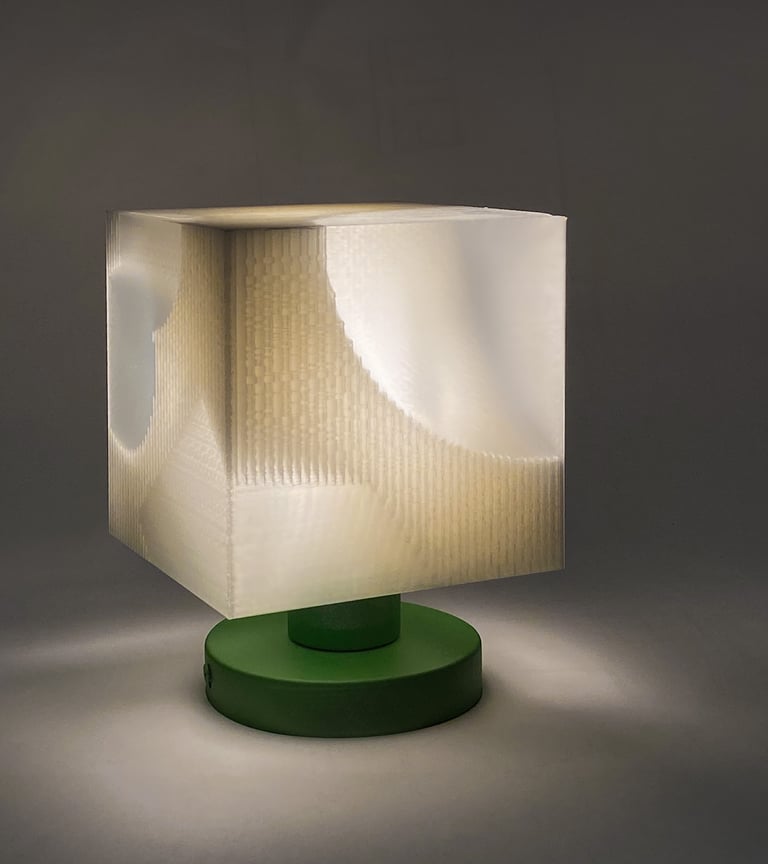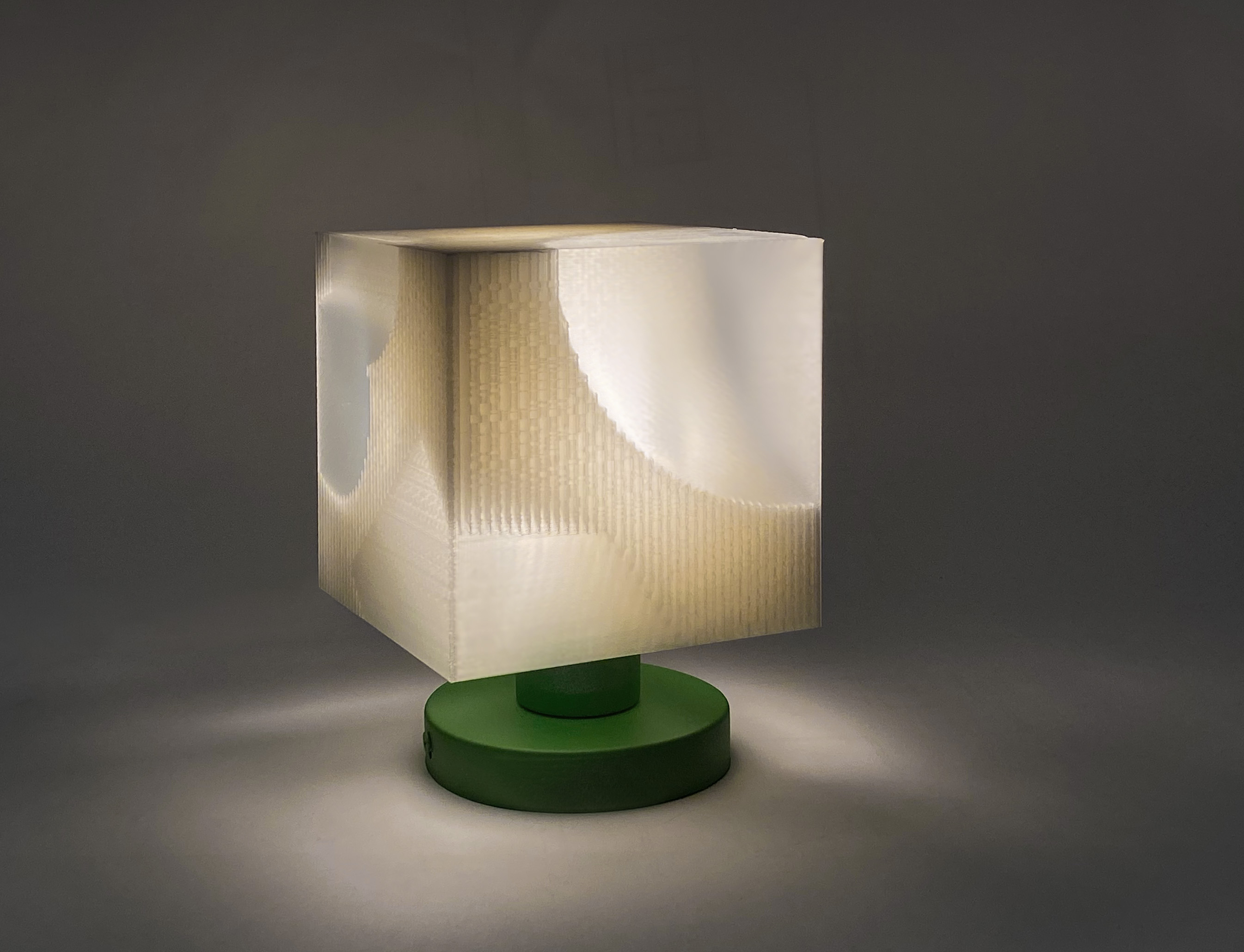 Light carve is a lamp made out of 3D Printing experiment with CURA's per model settings. By assigning different infill types(concentric, grid, etc.) and densities to the carving volumes, it creates different lighting effects out of a 3d printed cube.