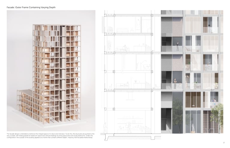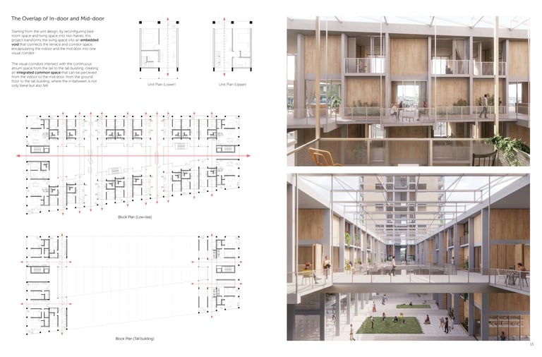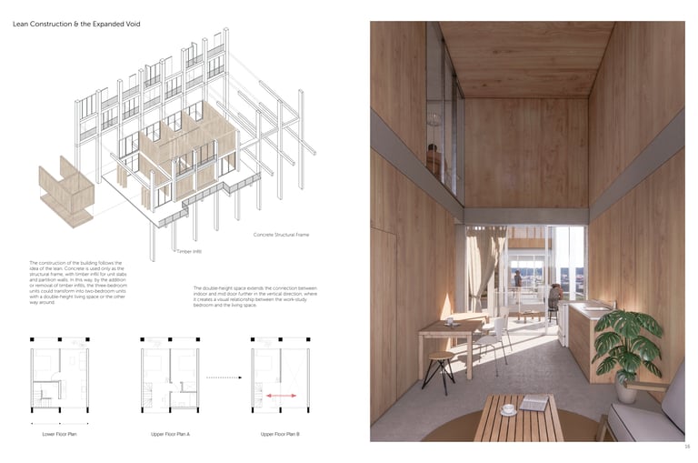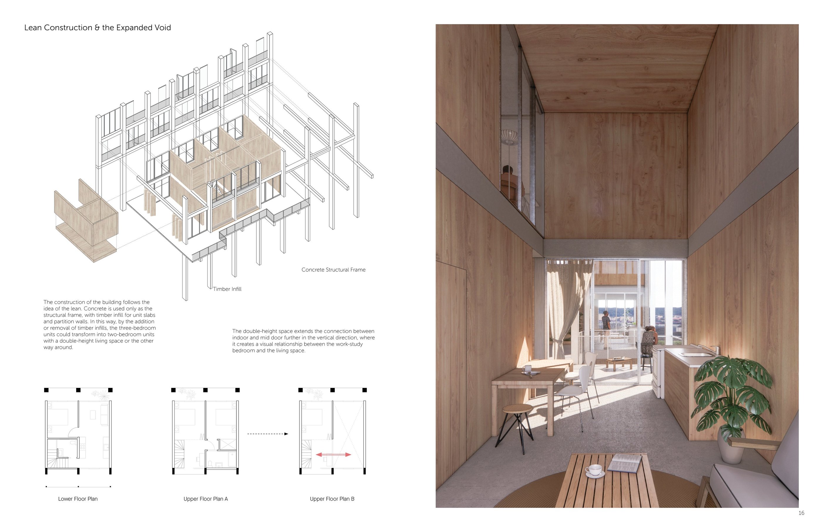 What is the nature of living among others? How do we construct a community in tall buildings? What is an affordable solution? This project engages with the current challenges of designing tall residential buildings in London by setting up “void” as its spatial structure, both on the domestic scale and scale of the community, aiming to create an integrated space of individual and collective.