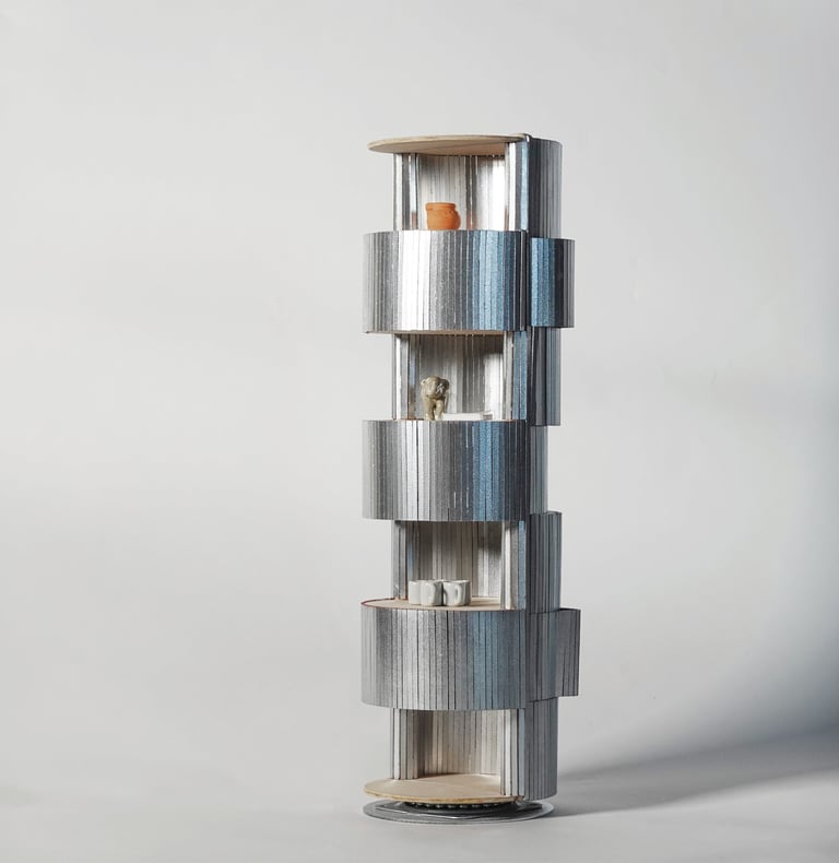 A shelf, a column or a standing sculpture, roll shelf activates the home under different scenarios and use settings.